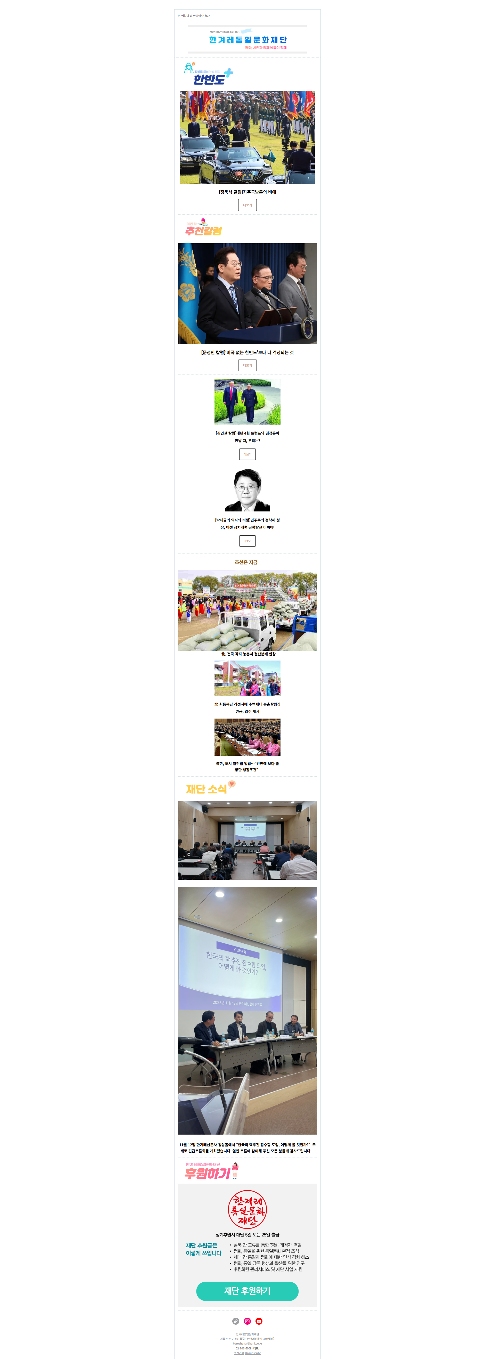 뉴스레터를 구독 하시면 매월 1~2회 한겨레평화연구소 기사와 재단 소식을 전해드립니다.